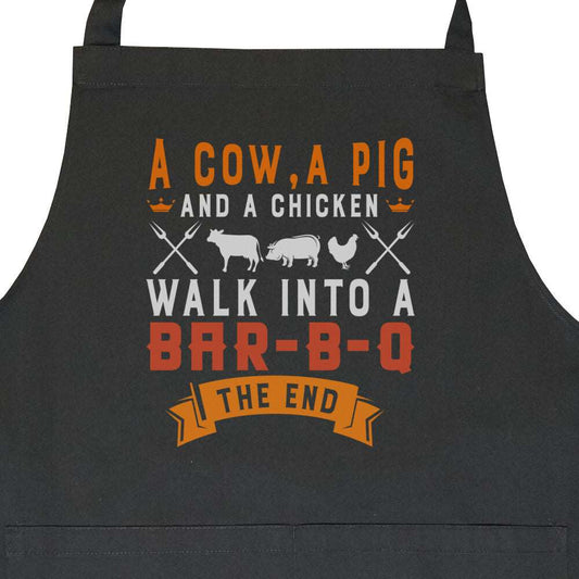 Grillschürze " A Cow A Pig and A Chicken" mit Tasche